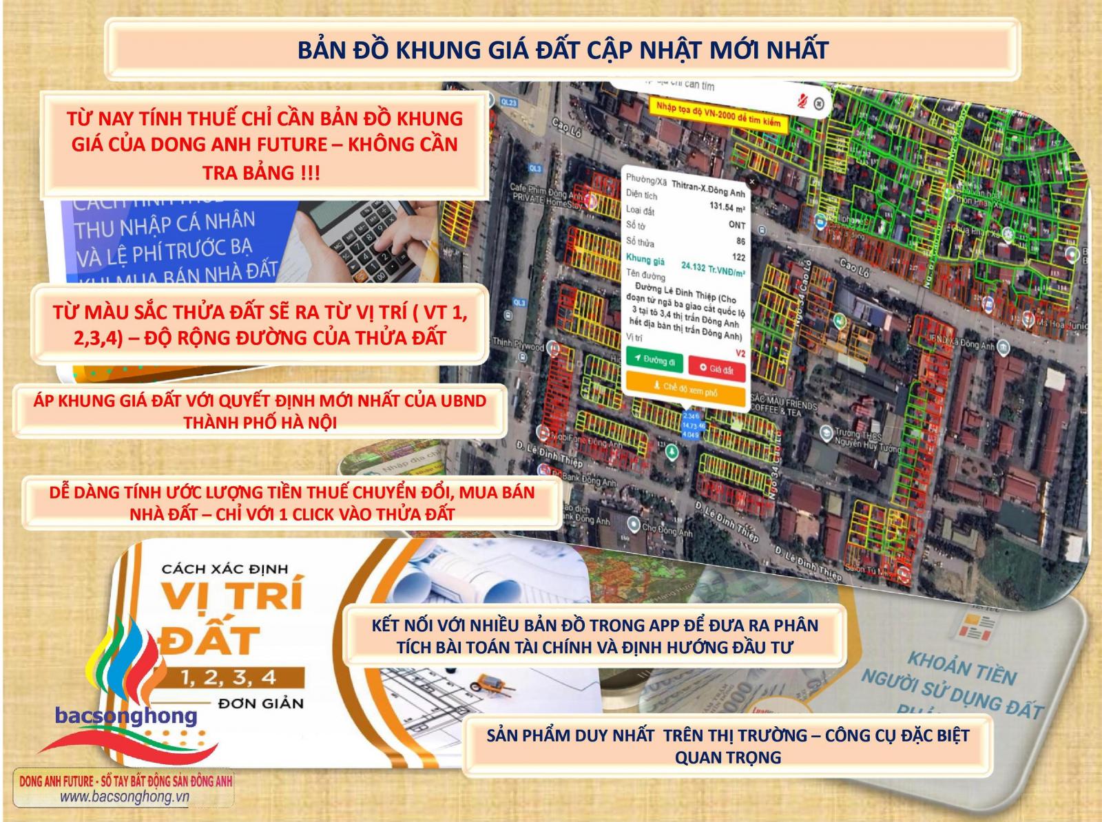 Bản đồ đất đã đấu giá ( Gồm hơn 70 khu đất đã đấu giá với khoảng 4000 thửa đất sẽ bao gồm thông tin số thửa , diện tích, vị trí, kích thước và tiện ích tương lai của khu đấu giá, và sẽ được cập nhật ngay sau có những khu đất đấu giá mới) Dự án trọng điểm ( Là vị trí và toàn cảnh quy hoạch tương lai của những dự án lớn như Vinhomes Cổ Loa, cầu Tứ liên, cầu Thượng cát, Các khu nhà ở xã hội Tiên Dương, Công Viên Kim Quy, Thành phố thông minh….)